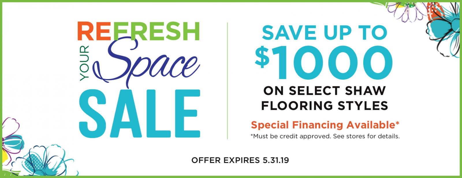 It’s spring! After a long winter, the warm breeze, buzzing bees, and beautiful blooms are finally here, and here at Carefree Carpet in Charlotte, NC, we are loving the new season. Spring is the perfect time to renovate your home by installing new floors, and our friends at Shaw Floors are making it even better with the Refresh Your Space Sale going on NOW, thru May 31st. During the sale, enjoy up to $1,000 on select Shaw Flooring styles. Plus, ask about special financing rates that make it even easier to get new floors fast this spring.